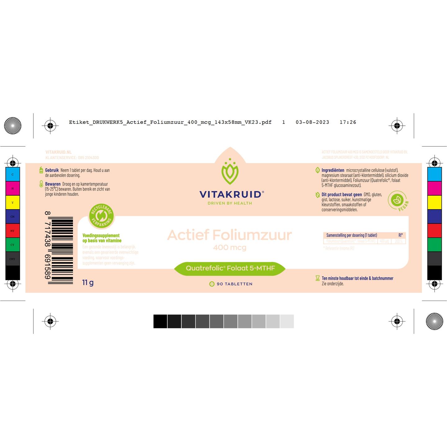 Vitakruid Actief Foliumzuur 400 mcg 90 tab